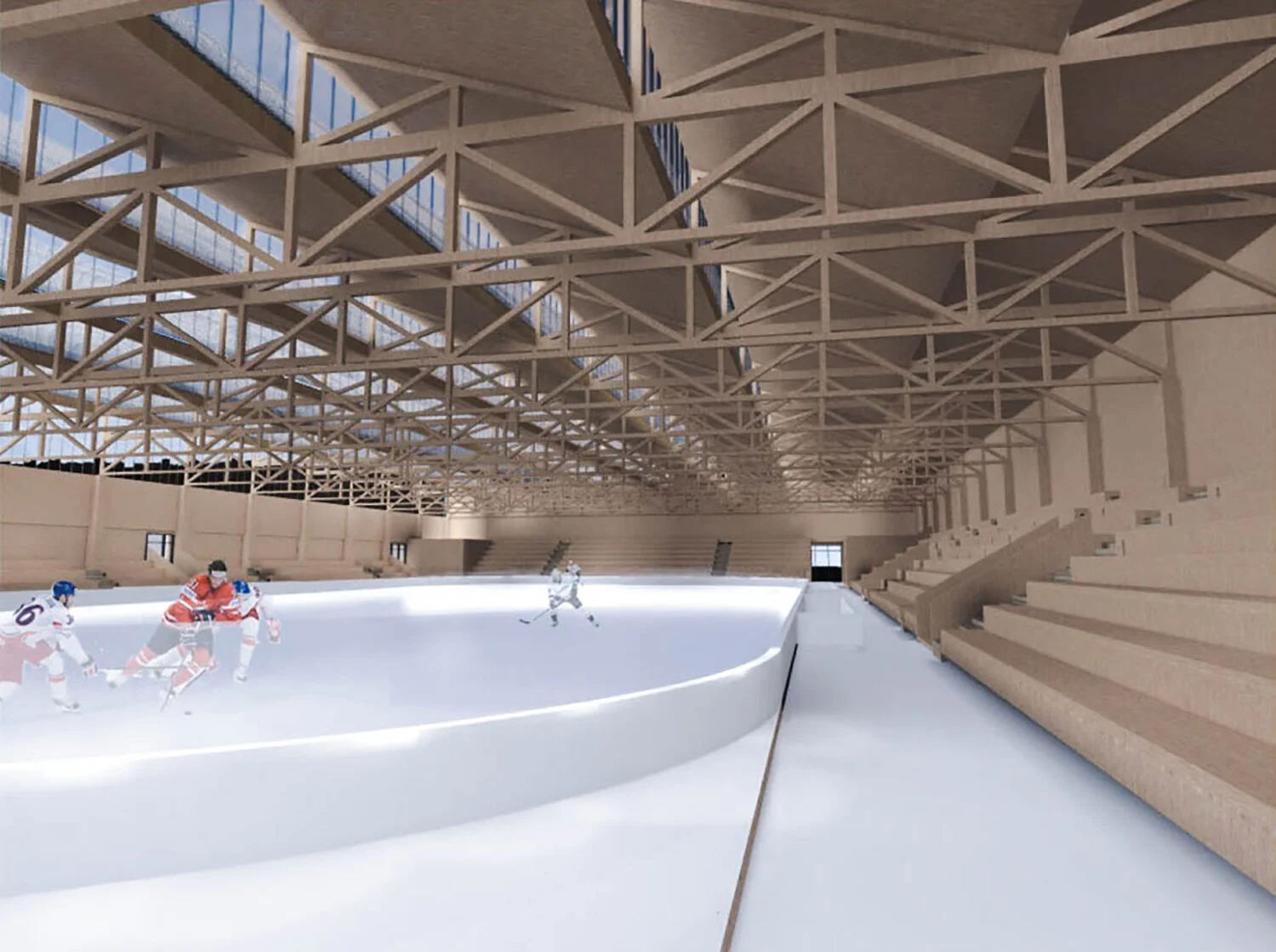 proposal for a prefabricated clt ice rink (Passivehouse standard).